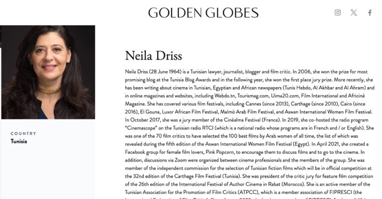 83rd Golden Globe Awards – Tunisian Critic Neïla Driss confirmed as International Voter