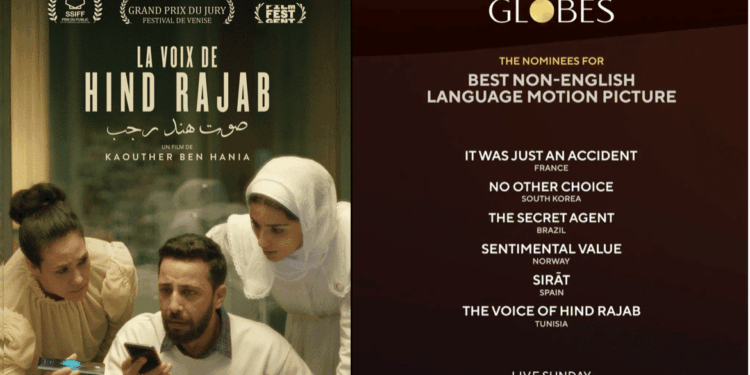 The nominations for the 2026 Golden Globes have just been announced, and Tunisian cinema has made history. The Voice of Hind Rajab, the latest film by Kaouther Ben Hania, has been nominated for the Golden Globe for Best Motion Picture â Non-English Language. This milestone marks another step in the extraordinary journey of a film that began in Venice and went on to be selected as Tunisiaâs official entry for the 2026 Academy Awards.