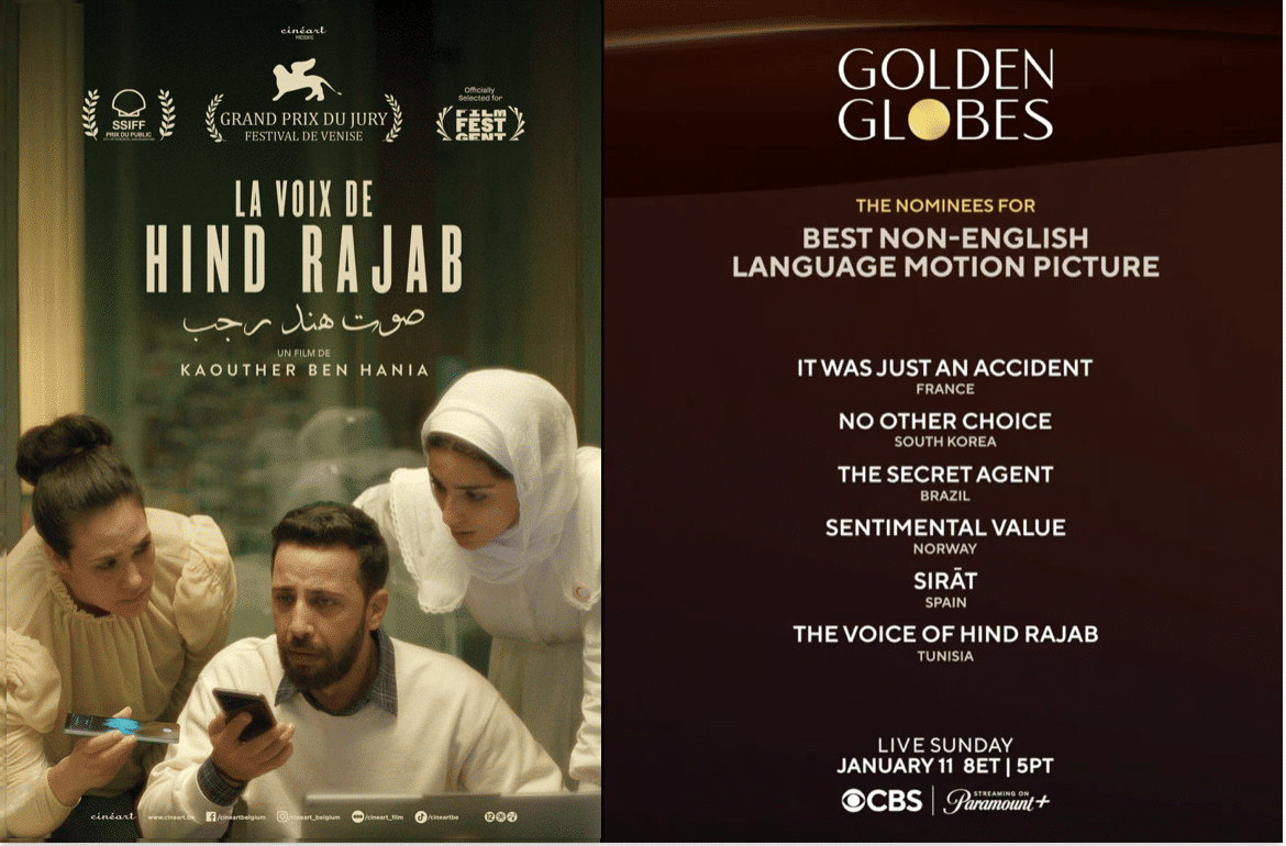 The nomination of The Voice of Hind Rajab for the Golden Globe for Best Motion Picture â Non-English Language is far more than another accolade. It symbolizes the entry of Tunisian cinema into the global conversation, affirming the strength of its storytelling and the singular voice of its filmmakers.