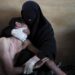 This photo shows a woman holding a loved one injured in her arms inside a mosque used as a country hospital by demonstrators in Sanaa.