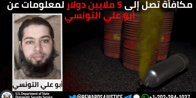 In a statement made public on Saturday November 12, the US State Department announced a large award of five million dollars against any information denouncing the Tunisian terrorist “Abu Ali Attounisi”.
