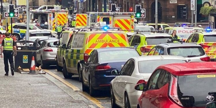 Scottish police say that a Glasgow police officer was injured during the incident and was transported to hospital. It is in critical but stable condition.