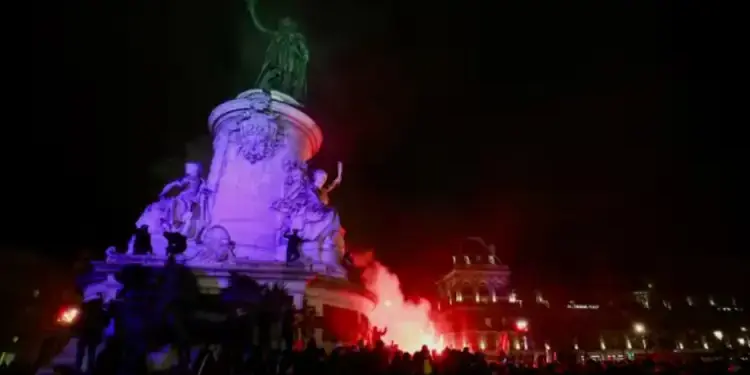 In Paris, the Place de la République saw a few hundred people in the early evening, among which floated flags from the new anti -capitalist party (NPA). The atmosphere was punctuated by songs, smoke bombs and fireworks, witnesses of a celebration tinged with political demands.