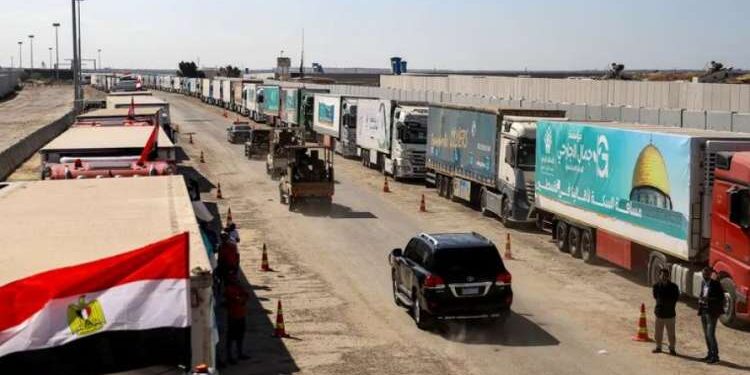 Humanitarian aid trucks began this Saturday, October 21 to cross the Rafah terminal on the Egyptian side, to the Gaza Strip.
