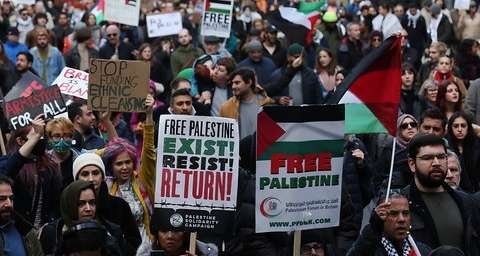 A huge procession, stretching nearly 4 kilometers, paraded on Saturday in the streets of London to claim an immediate ceasefire in Gaza.