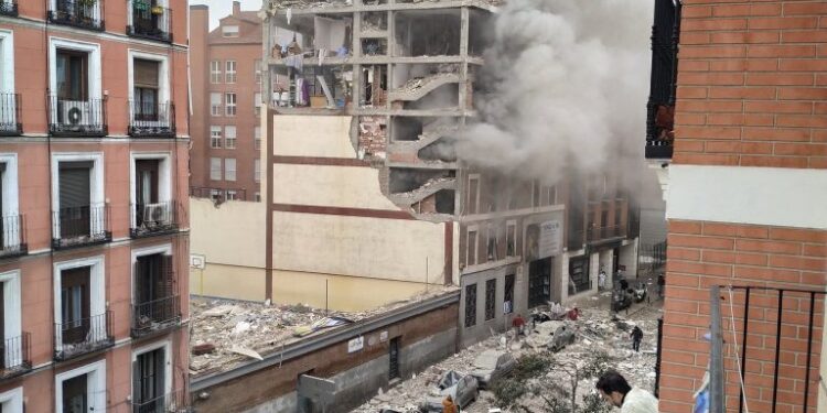 Spain: Video that shows the damage caused by what would be an explosion of gas (to be confirmed) in a building in the center of Madrid. pic.twitter.com/9bfd4iekfs
