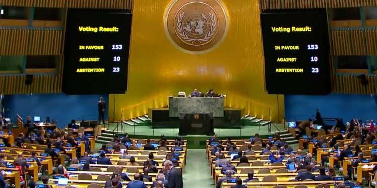 The text was adopted by 153 votes for, including Tunisia, 10 against including Israel and the United States, and 23 abstentions on 193 member states.