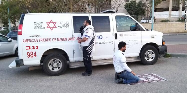 This a CNN report on two paramedical paramedics. Two paramedics, the first is Muslim, Zoher Abu Jama and the second is Jewish, Avraham Mintz. Both “fight” together against the spread of the coronavirus.