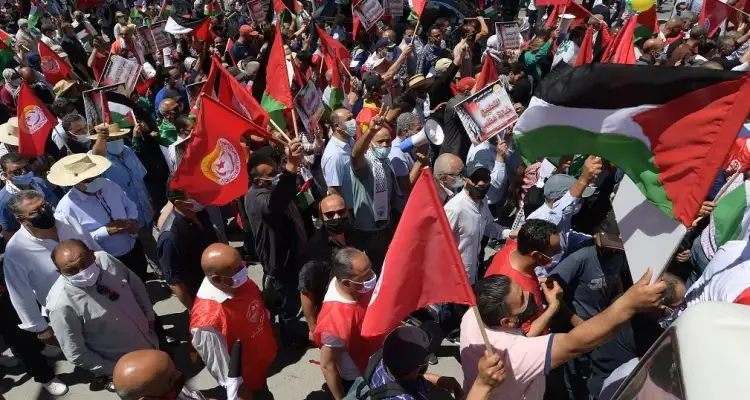 At the end of the speech, the participants will take part in a symbolic working -class march, in support of the Palestinian people, from Place Mohamed Ali to the place of January 14, 2011.