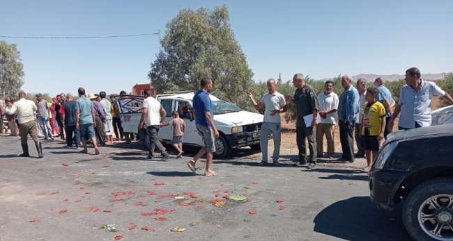 This truck which transported the 23 agricultural workers skidding yesterday, Sunday, September 24, 2023, at the level of the national road n ° 3 in the delegation of Bir El Hfay (governorate of Sidi Bouzid).