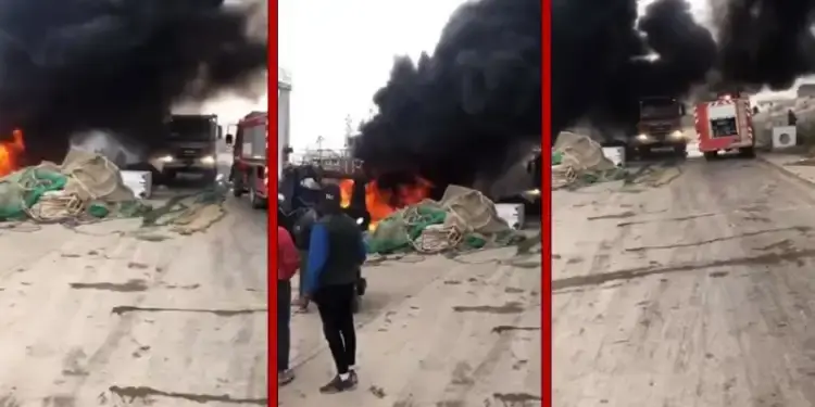 A trawler in flames at the port of Zarzouna, the worst avoided