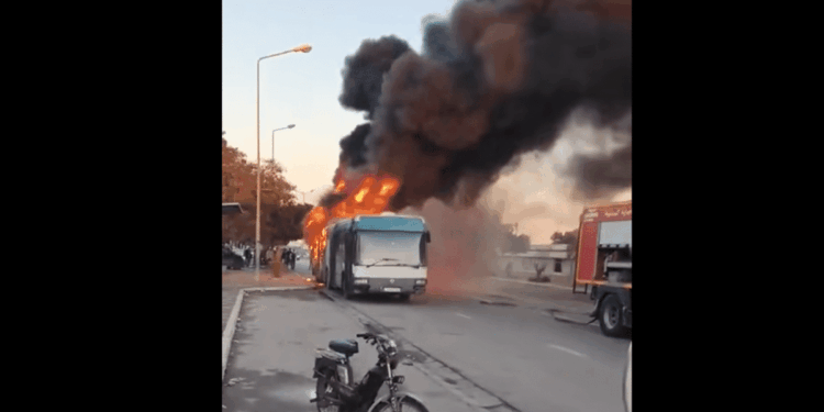 A column of smoke was seen around 7:30 a.m. on the axis linking Bouchamma to the town of Gabès. A shuttle usually intended for transporting students was ravaged by flames, in circumstances still undetermined.