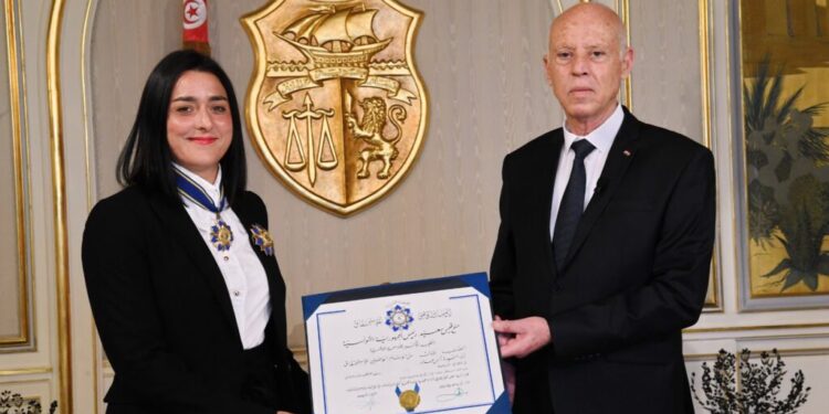 The President of the Republic, Kais Saied decorated this Thursday, July 14, 2022, the Tunisian champion Ons Jabeur of the first class insignia of the National Order of Sports Merit and this, during a ceremony at the Carthage Palace, according to the press release published by the Presidency of the Republic.