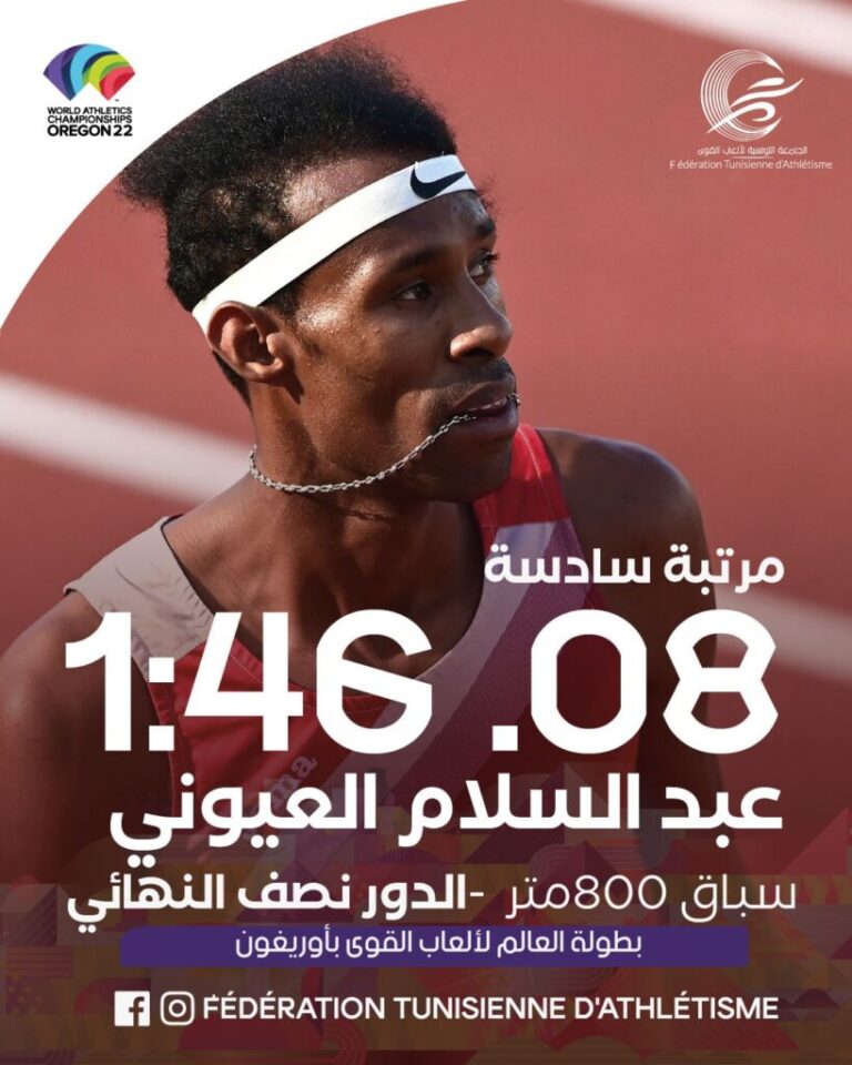Abdessalem Laâyouni failed in the 800-meter semi-finals and was unable to access the final by finishing 6th in his series with a time of 1:46:08 during the qualifying race for the final of the world athletics championships, which take place from July 15 to 24 in Eugene, in the United States.