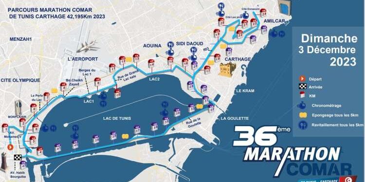 The new edition of the Tunis Carthage Comar Marathon will take place on Sunday, December 3, as announced in the morning of today Friday, November 17, 2023 during a press conference held by the organizers, presenting the main lines of this annual sports meeting.