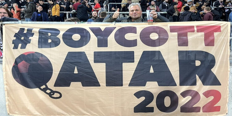 Boycottqatar2022 banners, we now see each week in European stadiums.