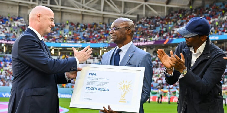 The Cameroonian Roger Milla, considered one of the best striker in African football, was honored, today by the president of FIFA Gianni Infantino, just before the match between Switzerland in Cameroon in the World Cup (1-0 for the Helvetians).