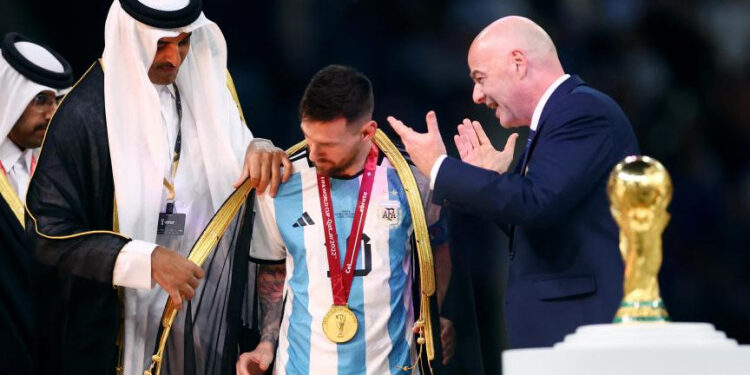 Many were surprised to see Lionel Messi, captain of Argentina World Champion, be dressed in a cape during the delivery of the World Cup trophy.
