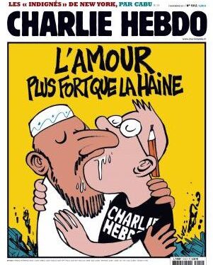 Certainly, the director of “Charlie Hebdo” really wants to kill his child. After the front page of last week, representing the Prophet Mohammed (Muhammad) and titled “Sharia weekly”, who earned him the fire of his premises, now the French satirical journalist relaunches in the provocation by presenting a new issue to appear tomorrow with, in the front page, a Muslim and a designer giving himself a very drooling Russian kiss, that is to say. In love, all with the slogan “make love not war”. An image of homosexuality which will certainly be badly welcomed by religions.