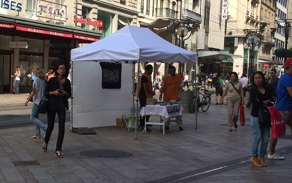 Classified terrorist organization in particular in Tunisia, in the United States, and in the United Kingdom, Ansar Achariaa is the gentle Sweet in Switzerland, not hesitating to appear shamelessly. Swiss newspapers have published photos where we see two members of Ansar Achariaa hold a stand on Place du Molard in Geneva, Friday, May 30, 2014.
