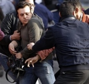 Tension rises between power and journalists. Having become too bulky, the pro Mubarak try by all means to silence the voices of the truth and to prohibit journalists from bringing the reality of the violence of clashes to the rest of the world. A scandalous practice which becomes alarming not only for journalists but also for the nature of the acts that these people seek to hide in the eyes of the world.