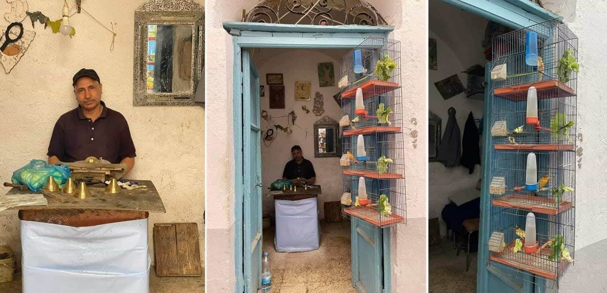 Surrounded by several canaries, Habib listens to them respond to each other by modulating their trills. Sitting in front of his workbench, he hammers the copper and, with fine punches, chisels the pieces that follow one another in his hands.