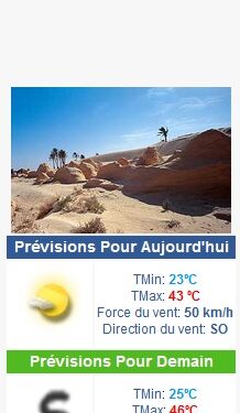 Tomorrow, Saturday June 13, they will be between 32 and 37 ° C on the North and the Center, between 39 and 44 ° C on the South and locally reaching 46 ° C with Sirocco blows in particular in Médenine. In Tataouine, we will record a peak of 44 ° C.
