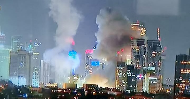 يمكن مشاهدة المدينة تتأثر بانفجار ودخان ينبعث منها، كما أفادت BFM TV.