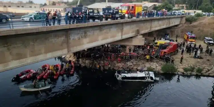 حافلة كانت تقل العديد من الركاب خرجت عن مسارها على جسر قبل أن تسقط في الوادي. أكدت الحماية المدنية حصيلة ثقيلة: 18 قتيلاً و24 جريحاً، بينهم عدة حالات خطيرة. بدأت تدخلات فرق الإنقاذ حوالي الساعة 17:45، بعد وقت قصير من سقوط المركبة.
