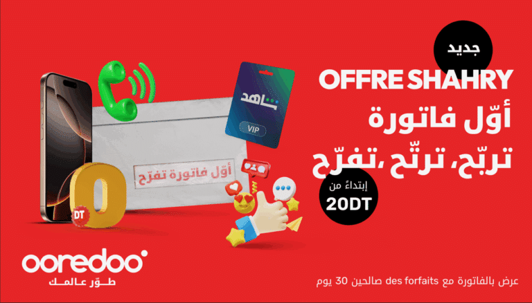 هذا الصيف، تضيف Ooredoo لمسة مميزة مع شهري، عرضها الجديد والقوي للدفع الآجل، المصمم خصيصاً للتونسيين الباحثين عن مزيد من القيمة، والمرونة، والحرية. باقات متعددة تبدأ من 20 ديناراً وتصل إلى 265 ديناراً تونسياً، لتمنح كل مشترك تجربة تواكب تطلعاته.