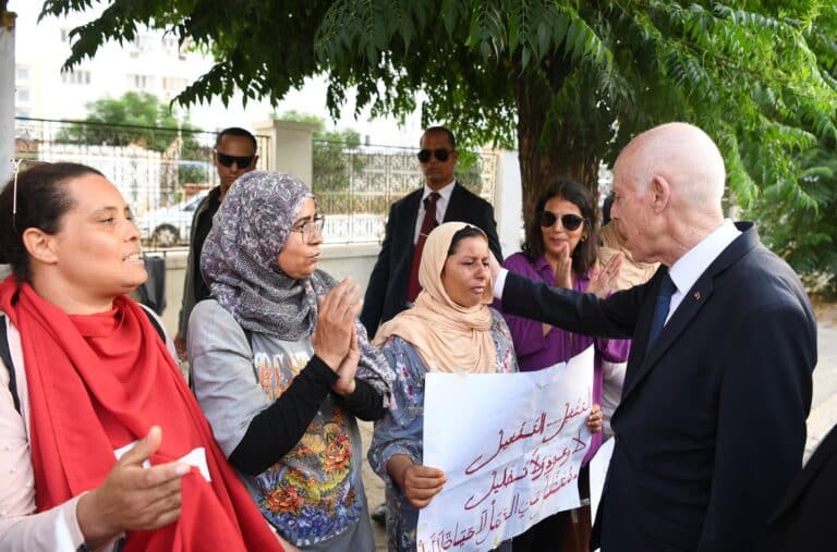 كما زار رئيس الدولة اعتصام الدكاترة العاطلين عن العمل أمام وزارة التعليم العالي. هؤلاء الخريجون يذكرون أنهم ينتظرون منذ سنوات الاندماج في القطاع العام. وأكد لهم سعيد أن “العمل حق والكرامة لا تقبل المساومة”، موضحاً أن نصوصاً قانونية قيد الإعداد للسماح بتوظيفات جديدة. ومع ذلك، أقر بصعوبات الميزانية وأكد على ضرورة التوظيف “وفقاً للعدالة والأولويات الوطنية”