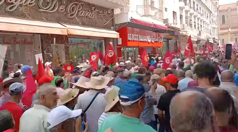 نُظمت مسيرة نقابية كبيرة يوم الخميس 21 أوت 2025، انطلقت من ساحة محمد علي باتجاه شارع الحبيب بورقيبة، بدعوة من الاتحاد العام التونسي للشغل (UGTT). وقد تم تنظيم هذا التجمع كرد فعل على ما وصفته المركزية بـ”الهجوم على بيت النقابة” ومحاولة “تخريب الحوار الاجتماعي” في تونس.