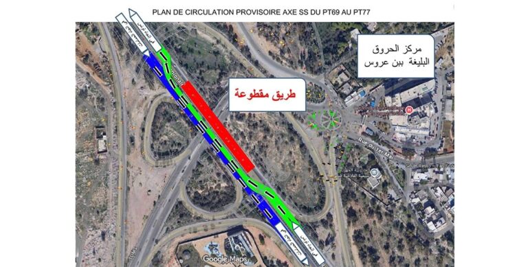 أعلنت وزارة التجهيز والإسكان عن تمديد تحويل جزئي لحركة المرور على الطريق الجهوية رقم 22 في بن عروس، على مستوى مستشفى الحروق البليغة، لليلة إضافية. سيتم تطبيق هذا الإجراء في ليلة الجمعة 19 سبتمبر 2025، من الساعة 22:00 إلى الساعة 5:00 صباحًا، للسماح بهدم الجسر القديم.