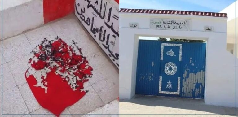 تم الإبلاغ عن عمل تدنيس في ليلة 6 إلى 7 نوفمبر في المدرسة الابتدائية الجوهرة في أبّان، في معتمدية الهوارية، ولاية نابل. وفقًا لبشير الطيب، عضو المجلس الجهوي للمعتمدية، تم ايقاف ثمانية أفراد بعد أن أحرقوا العلم التونسي وعلقوا لافتة تحمل كتابات تتعارض مع السيادة الوطنية وعلمانية الدولة.