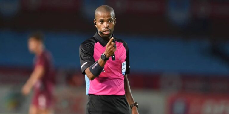 PRETORIA, SOUTH AFRICA - JANUARY 03:  Referee Tom Abongile during the DStv Premiership match between Mamelodi Sundowns and Swallows FC at Loftus Versfeld Stadium on January 03, 2023 in Pretoria, South Africa. (Photo by Lefty Shivambu/Gallo Images)