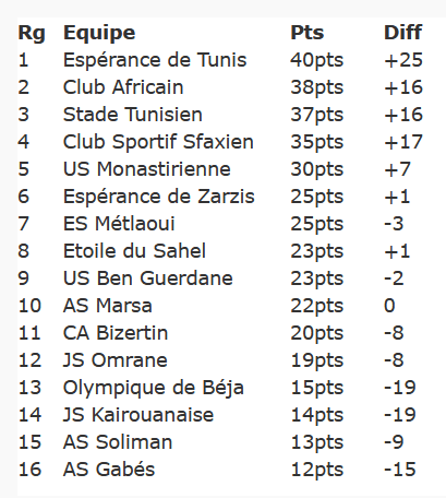 Grâce à ce succès, le club du Bardo grimpe à la troisième place avec 37 points et revient à une longueur du Club Africain et à trois de l’Espérance de Tunis. Le trio de tête se tient désormais en quelques unités et la phase retour s’annonce plus disputée que jamais.