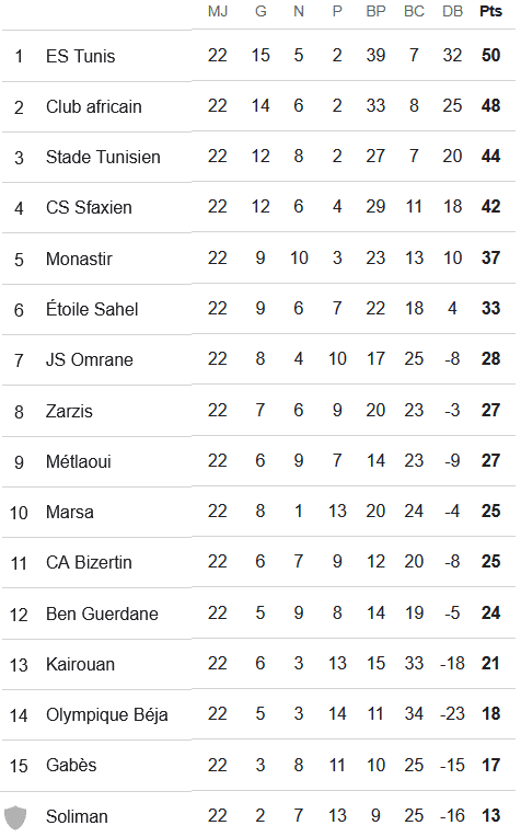 - AS Soliman – ES Zarzis