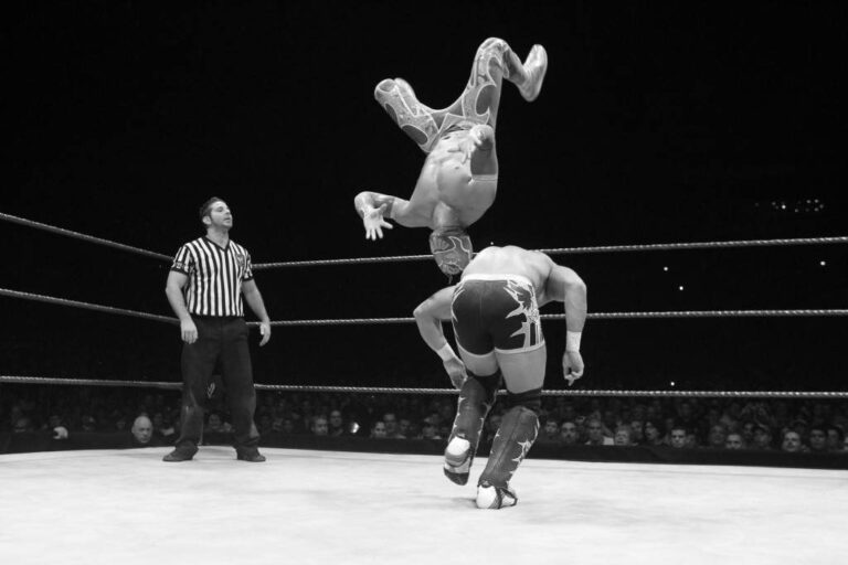 Prises peu orthodoxes et violentes manchettes Ă©taient la règle du jeu pour ces combats oĂą il n’Ă©tait pas rare de voir l’un des lutteurs sur les cordes du ring.