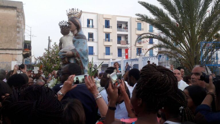 Suivie par une foule nombreuse formée de fidèles catholiques et de membres des autres communautés goulettoises, la procession a eu lieu dans la liesse des hymnes et des youyous.