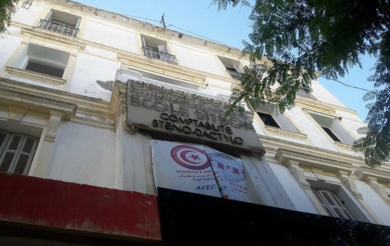 Rue de Rome, Ă  Tunis, l’enseigne est toujours lĂ  et annonce en lettres fanĂ©es l’existence d’une Ă©cole. Il faut lever la tĂŞte pour voir ce panneau qui est lĂ  depuis des dĂ©cennies.