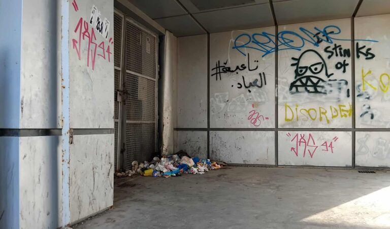 Et c’est là qu’il ou elle a déversé ses déchets à même la plateforme, dans un coin. Depuis plusieurs jours, les déchets ne sont pas enlevés et bonjour les relents !