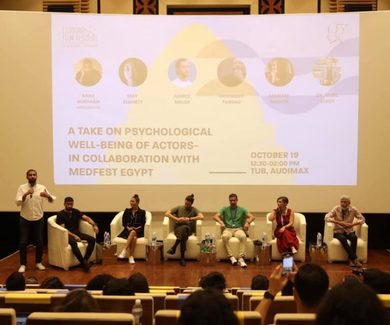 En collaboration avec le festival Medfest Egypt, le Festival du Film d’El Gouna (GFF) a organisĂ© lors de sa cinquiĂšme Ă©dition qui s’est dĂ©roulĂ©e du 14 au 22 octobre 2021, un panel intitulĂ© « Un regard sur le bien-ĂȘtre psychologique des acteurs » ayant pour sujet la santĂ© mentale des artistes.
