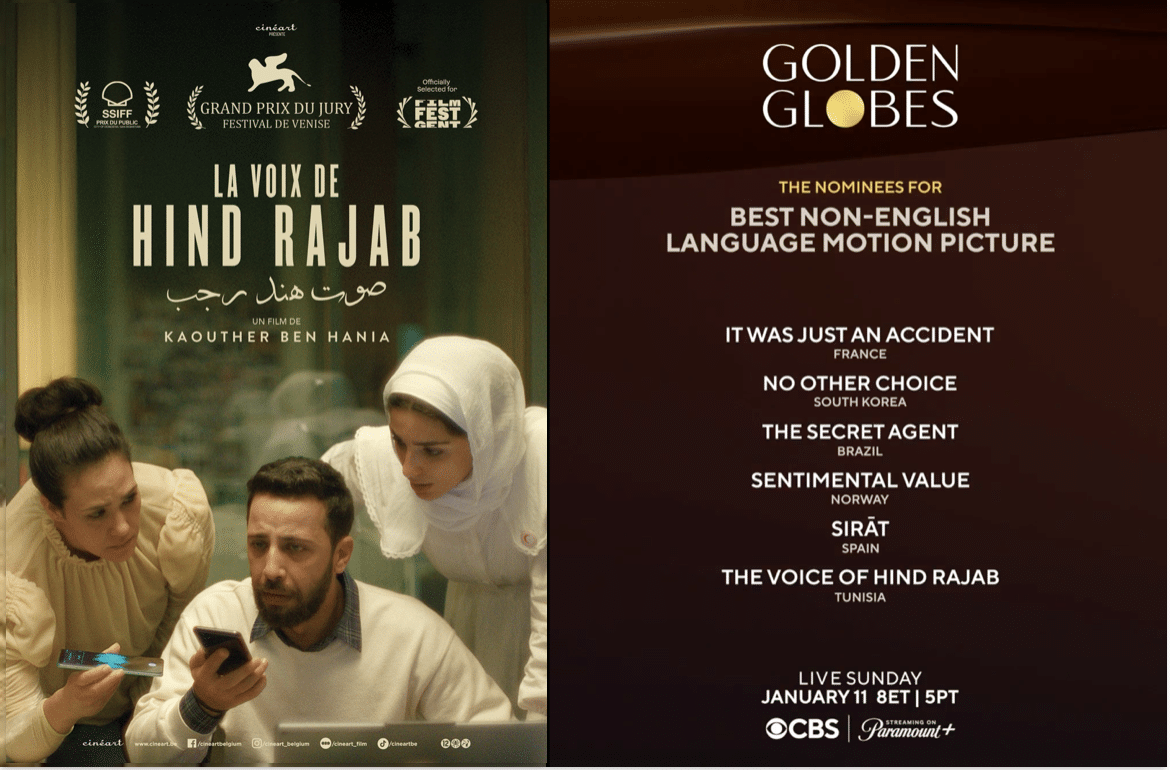 Golden Globes 2026 – « La Voix de Hind Rajab » nommé pour le Prix du Meilleur film en langue étrangère
