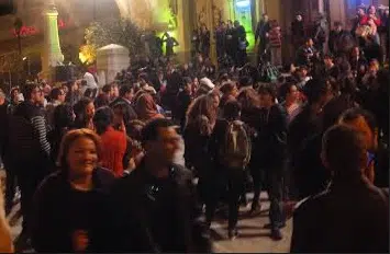 Une ambiance bon enfant régnait aux alentours des lieux de projections, avec une présence policière assez importante.