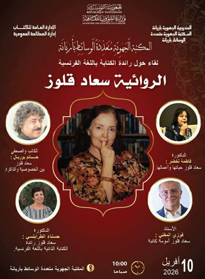 La Médiathèque régionale de l’Ariana accueille ce vendredi 10 avril une rencontre en hommage à l’écrivaine Souad Guellouz, pionnière de la littérature francophone en Tunisie.