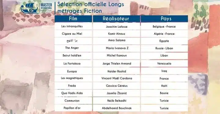 Le Master International Film Festival-Yasmine Hammamet a sélectionné une liste des meilleurs long-métrages de fiction et documentaire, issus des cinq continents afin de participer à la compétition officielle de sa première édition fondatrice qui se déroulera du 4 au 11juin prochain.