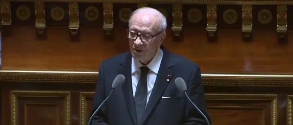 « Jamais, en revanche un chef d’Etat venu du sud de la méditerranée, n’a été accueilli dans cette enceinte » a déclaré Gérard Larcher s’adressant à Béji Caid Essebsi avant d’ajouter : « tous vos prédécesseurs, Mr le Président, étaient des chefs d’Etats européens, vous êtes le premier chef d’Etat à la tête d’un pays appartenant au monde arabo-musulman à s’exprimer dans l’hémicycle du Sénat siégeant en séance solennelle. »