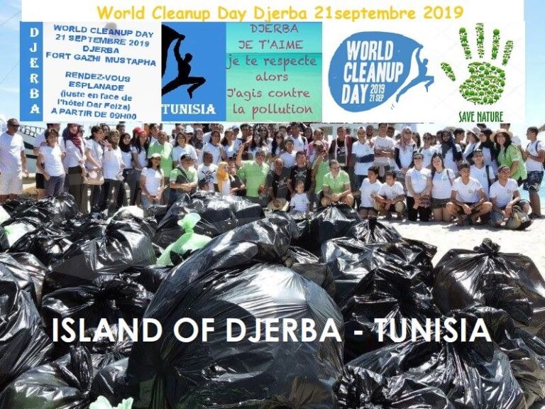 « PrĂ©parez vous pour la «vague verte» 2019 qui partira du Japon en passant par l’ile de Djerba, et se terminera Ă  HawaĂŻ. World Cleanup Day, est la journĂ©e du plus grand nettoyage de notre Planète, ce mouvement est mondial », peut-on lire dans les messages de sensibilisation de cet Ă©vĂ©nement.