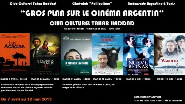 Tunis | Le club culturel Tahar Haddad organisera du 7 avril au 12 mai prochain un cycle sur le cinéma argentin intitulé « Gros plan sur le cinéma argentin ».