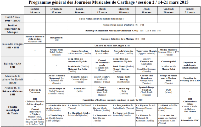Tunis : Journées Musicales de Carthage du 14 au 21 mars